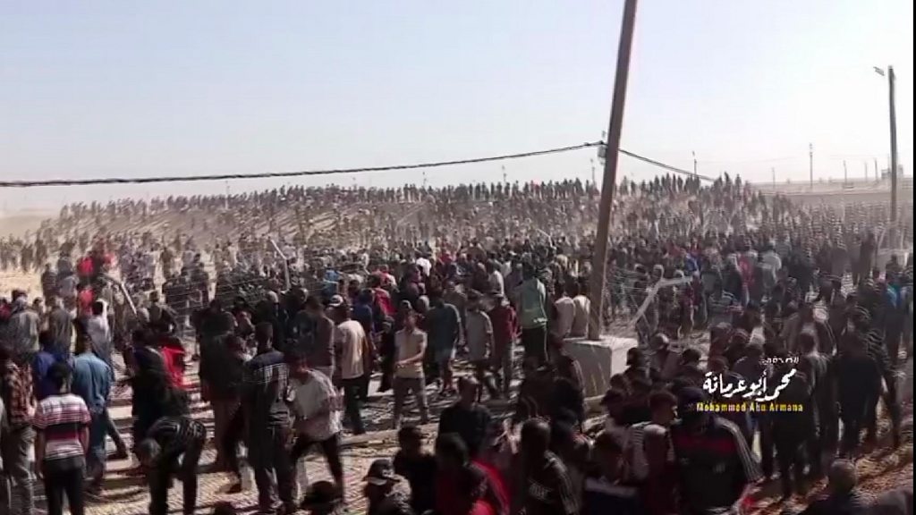 Videos showed crowds walking over torn-down...