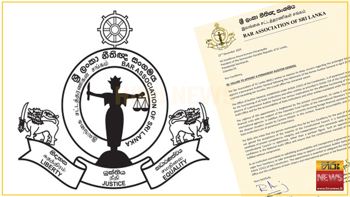 The Bar Association of Sri Lanka (BASL) has addressed a formal letter to President Anura Kumara Dissanayake, urging the immediate appointment of a permanent Auditor General in accordance with the Constitution.The...