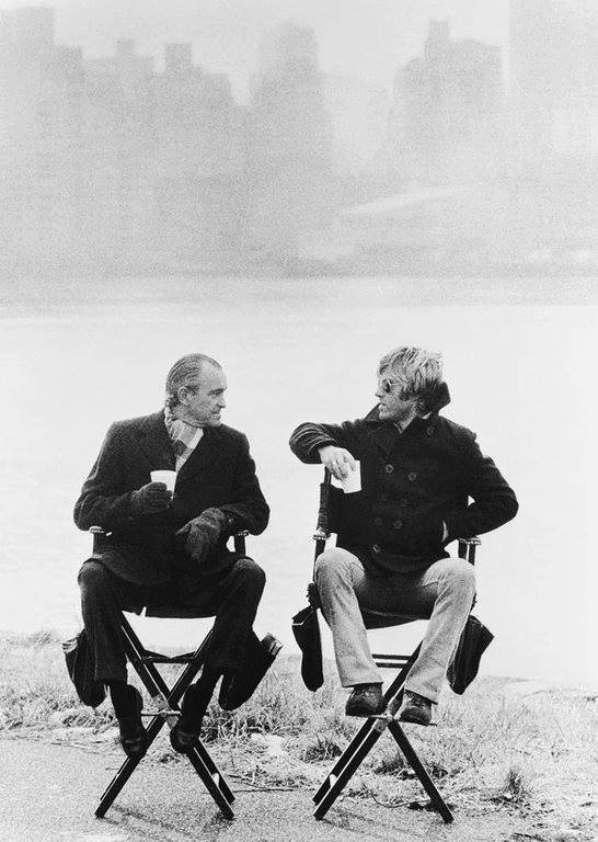 Former Director of Central Intelligence Richard Helms and Robert Redford on the set of the film "Three Days of the Condor" (1975)